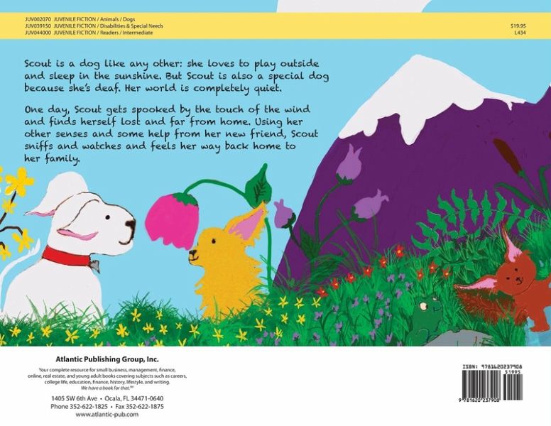 Scout is a dog like any other: she loves to play outside and sleep in the sunshine. But Scout is also a special dog because she's deaf. One day, Scout gets spooked by the touch of the wind and finds herself lost and far from home. Using her other senses and some help from her new friend, Scout finds her way back home to her family.