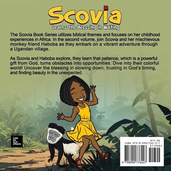 The Scovia Book Series utilizes biblical themes and focuses on her childhood experiences in Africa. In the second volume, join Scovia and her mischievous monkey friend Haboba as they embark on a vibrant adventure through a Ugandan village. As Scovia and Haboba explore, they learn that patience, which is a powerful gift from God, turns obstacles into opportunities. Dive into their colorful world! Uncover the blessing in slowing down, trusting in God's timing, and finding beauty in the unexpected.