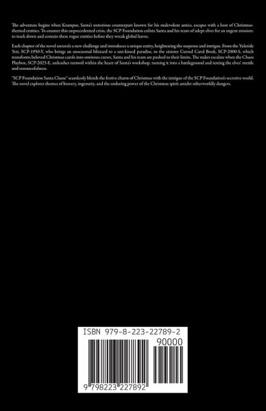 The adventure begins when Krampus, Santa's notorious counterpart known for his malevolent antics, escapes with a host of Christmas-themed entities. To counter this unprecedented crisis, the SCP Foundation enlists Santa and his team of adept elves for an urgent mission: to track down and contain these rogue entities before they wreak global havoc. Each chapter of the novel unravels a new challenge and introduces a unique entity, heightening the suspense and intrigue. From the Yuletide Yeti, SCP-1950-Y, who brings an unseasonal blizzard to a sun-kissed paradise, to the sinister Cursed Carol Book, SCP-2000-S, which transforms beloved Christmas carols into ominous curses, Santa and his team are pushed to their limits. The stakes escalate when the Chaos Playbox, SCP-2025-E, unleashes turmoil within the heart of Santa's workshop, turning it into a battleground and testing the elves' mettle and resourcefulness. "SCP Foundation Santa Clause" seamlessly blends the festive charm of Christmas with the intrigue of the SCP Foundation's secretive world. The novel explores themes of bravery, ingenuity, and the enduring power of the Christmas spirit amidst otherworldly dangers.