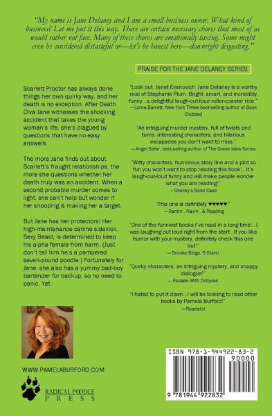 Scarlett Proctor has always done things her own quirky way, and her death is no exception. After Death Diva Jane witnesses the shocking accident that takes the young woman's life, she's plagued by questions that have no easy answers. The more Jane finds out about Scarlett's fraught relationships, the more she questions whether her death truly was an accident. When a second probable murder comes to light, she can't help but wonder if her snooping is making her a target. But Jane has her protectors! Her high-maintenance canine sidekick, Sexy Beast, is determined to keep his alpha female from harm. (Just don't tell him he's a pampered seven-pound poodle.) Fortunately for Jane, she also has a yummy bad-boy bartender for backup, so no need to panic. Yet.