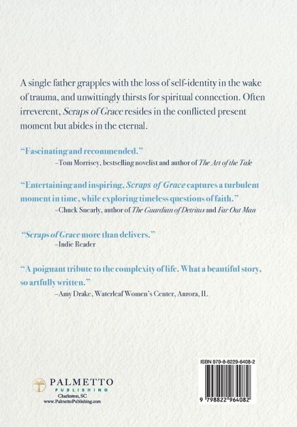 A single father grapples with the loss of self-identity in the wake of trauma, and begins to long for spiritual connection in this literary novel filled with wry humor and wit. Twenty-six-year-old Tyler Manion is overwhelmed by the loss in his life. Six months ago, his wife died suddenly, and tomorrow will be his last day at General Motors. Raising his nearly two-year-old son alone, he puts up a brave front, pretending to have it all together. But he can't seem to focus, and his spiritual attention deficit disorder is keeping him from any meaningful connection with the one who could help him most in his hour of need. A high school girl basketball phenom, a gruff World War II veteran, a hippie nun and a beguilingly brainy graduate student will each help him rediscover his sense of identity, and perhaps find his spiritual bearings. Scraps of Grace opens in Michigan in the summer of 1990, a time of turmoil and of hopefulness, across the world and at home. Often irreverent in tone and detail, Scraps of Grace resides in the conflicted present moment but abides in the eternal. At the end of the book, there is a page of discussion questions for book clubs, designed to deepen readers' literary exploration of the themes of identity loss and spiritual renewal. "Fascinating and recommended." --Tom Morrisey, bestselling novelist and author of The Art of the Tale "Entertaining and inspiring, Scraps of Grace captures a turbulent moment in time, while exploring timeless questions of faith." --Chuck Snearly, author of The Guardian of Detritus and Far Out Man "Scraps of Grace more than delivers." --Indie Reader "A poignant tribute to the complexity of life. What a beautiful story, so artfully written." --Amy Drake, Waterleaf Women's Center, Aurora, IL