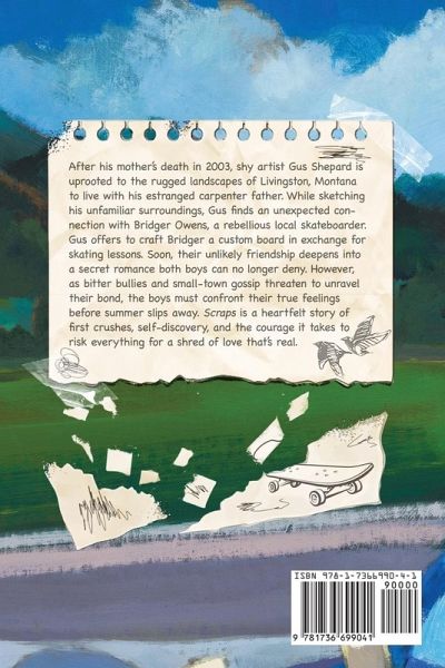 Scraps: In rural 2003 Montana, two closeted teen boys navigate skateboarding, harsh small-town judgment, and a summer of unexpected young love. ¿ MM Teen Gay Romance ¿¿ Small-Town Secrets ¿ Breathtaking Montana Landscapes ¿ Heart-Pounding Skateboarding Action ¿ Perfect for fans of Call Me by Your Name, Mid 90s, Perks of Being a Wallflower, and Heartstopper. When Gus Shepard's quiet artistic life is upended by his mother's death in 2003, he's sent to the rural town of Livingston, Montana, to live with his estranged woodworking father. For Gus, it's a place filled only with grief, painful childhood memories, and too much sawdust-until he meets Bridger Owens, a local skateboarder with a rebellious streak. Drawn together by a deal-Gus will build Bridger a handcrafted board in exchange for skateboarding lessons-the two form an unexpected bond, inspiring each other to reach for bigger goals and make the most of their short summer. What starts as friendship soon blossoms into a tender romance they must keep hidden in a town where everyone already knows each other's secrets. In a town this small, escaping feels impossible. Being... gay? Unthinkable. Immediately suspicious, Bridger's jealous skate crew leader, Max Stevens, resents Gus and his growing closeness to his best friend. And the coolest skater girl in Livingston, Tara Shae, senses that Gus, like her, doesn't quite fit the town's mold. As whispers turn into confrontations and family pressures mount, Gus and Bridger's fragile relationship is tested at every turn. Through late-night swims, daring skate sessions, and moments of breathtaking vulnerability, Scraps paints an unforgettable picture of discovering young queer love in the early 2000s. Will Gus and Bridger risk everything to hold onto what they've found, or will the weight of their separate worlds pull them apart?
