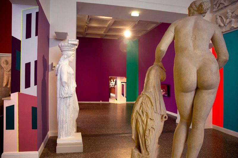 Was macht den Reiz der Antike aus? Woher bezieht sie ihre Aktualität? Und wie kann sich ein Museum der Antike zeitgemäß zuwenden? Mit vielfältigen künstlerischen Techniken - Wandmalerei, Textilarbeiten, Collage, Installation, Sound und Film - gehen die Ausstellung und die Begleitpublikation diesen Fragen nach. Räume werden gestaltet, die sich zwischen realer und fiktiver Architektur, zwischen Konkretem und Imaginärem bewegen. Huber hinterfragt dabei grundsätzlich das Verhältnis von Wand, Raum und Betrachter_in und lädt zum Nachdenken über antike und zeitgenössische Dekorprinzipien und Raumkonzepte ein.