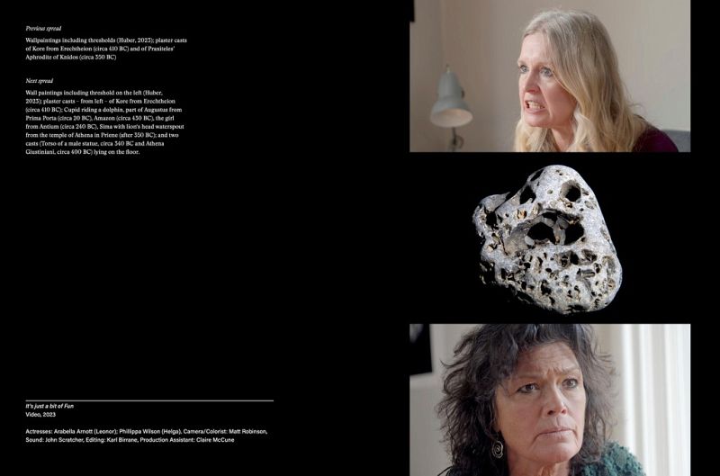 Catrin Huber (geb. 1968 in Lörrach, lebt und arbeitet in Newcastle upon Tyne) setzt sich in ihrer oft ortsspezifischen künstlerischen Praxis mit Architektur, Räumen der Fiktion und Imagination auseinander. In ihrem jüngsten Projekt reinszeniert Huber die Antikensammlung der Kunsthalle zu Kiel. Dabei kollidieren zeitgenössische Kunstwerke, antike Statuen, Frauen aus der griechischen Tragödie und der Gegenwart und die Architektur der Antikensammlung.