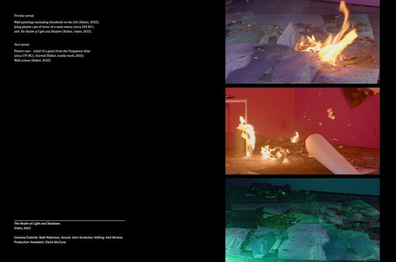 What is the source of antiquity's charm? What makes it relevant today? And how can a museum of antiquities frame a contemporary perspective on antiquity? The exhibition and the accompanying publication draw on a wide variety of creative techniques-murals, textile works, collages, installation and sound art, and film-to explore these questions. Creating rooms that blend real with fictional architecture, the tangible with the imaginary, Huber undertakes a probing interrogation of the interrelations between wall, space, and beholder and prompts reflections on ancient and contemporary principles of interior decoration and conceptions of architecture.
