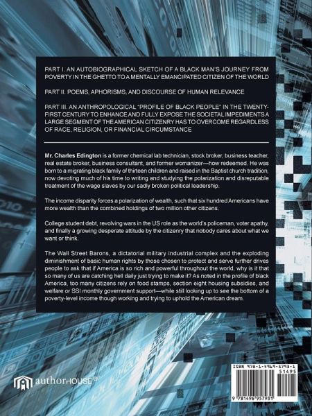 PART I. AN AUTOBIOGRAPHICAL SKETCH OF A BLACK MAN'S JOURNEY FROM POVERTY IN THE GHETTO TO A MENTALLY EMANCIPATED CITIZEN OF THE WORLD PART II. POEMS, APHORISMS, AND DISCOURSE OF HUMAN RELEVANCE PART III. AN ANTHROPOLOGICAL "PROFILE OF BLACK PEOPLE" IN THE TWENTY-FIRST CENTURY TO ENHANCE AND FULLY EXPOSE THE SOCIETAL IMPEDIMENTS A LARGE SEGMENT OF THE AMERICAN CITIZENRY HAS TO OVERCOME REGARDLESS OF RACE, RELIGION, OR FINANCIAL CIRCUMSTANCE