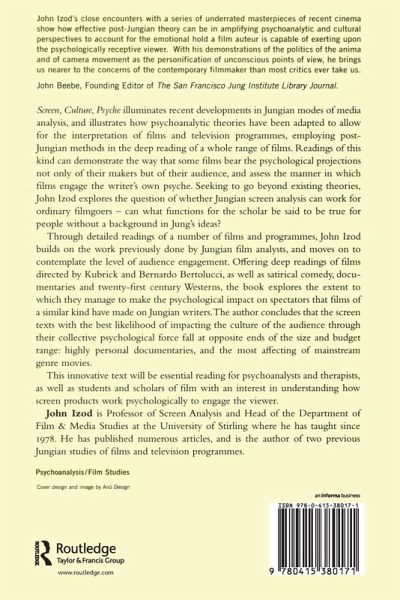Screen, Culture, Psyche illuminates recent developments in Jungian modes of media analysis, and illustrates how psychoanalytic theories have been adapted to allow for the interpretation of films and television programmes, employing Post-Jungian methods in the deep reading of a whole range of films. Readings of this kind can demonstrate the way that some films bear the psychological projections not only of their makers but of their audience, and assess the manner in which films engage the writer's own psyche. Seeking to go beyond existing theories, John Izod explores the question of whether Jungian screen analysis can work for ordinary filmgoers - can what functions for the scholar be said to be true for people without a background in Jung's ideas?