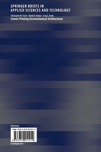 Introduction and current applications of screen-printed electrochemical architectures.- Fundamentals of screen-printing electrochemical architectures.- Fabricating screen-printed electrochemical architectures: successful design and fabrication.- Quality Control/Quality analysis of electrochemical screen-printed sensors.