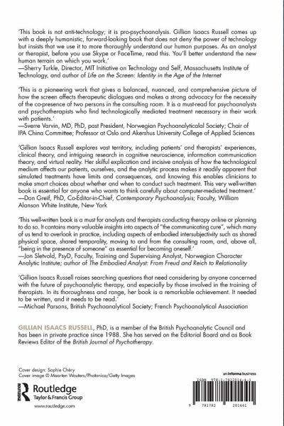 ACKNOWLEDGEMENTS ABOUT THE AUTHOR SERIES EDITOR'S PREFACE FOREWORD by Todd Essig INTRODUCTION PART I ON THE FRONTIERS CHAPTER ONE The western frontier CHAPTER TWO Exploring the speculative non-fiction digital frontier CHAPTER THREE Mapping the digital frontier PART II IN THE CONSULTING ROOM AND THE RESEARCH LABORATORY CHAPTER FOUR What happens in the consulting room CHAPTER FIVE From the first laboratory: neuroscience connections CHAPTER SIX From the second laboratory: technologically mediated communicationPART III ON THE SCREEN CHAPTER SEVEN The mediating device CHAPTER EIGHT The problem of presence PART IV MAKING A PLACE FOR SCREEN RELATIONS CHAPTER NINE Sometimes it works . . . CHAPTER TEN The elephant in the room CHAPTER ELEVEN The toothpaste and the tube CHAPTER TWELVE To be in the presence of someone REFERENCES INDEX