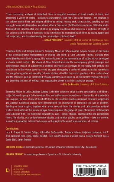 Screening Minors in Latin American Cinema is the first book to examine how Latin American filmmakers represent the subjectivity of children and adolescents in an adult medium. The chapters analyze children’s developing agency in diverse social contexts across Latin America.