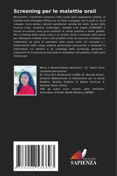 Nonostante i significativi progressi nella salute della popolazione globale, le malattie orali rimangono diffuse sia nei Paesi sviluppati che in quelli in via di sviluppo. Carie dentali, disturbi parodontali, perdita dei denti, lesioni della mucosa orale, neoplasie orofaringee, malattie orali legate all'HIV/AIDS e lesioni oro-dentali sono gravi problemi di salute pubblica a livello globale. Uno screening della salute orale è un esame visivo e manuale della bocca per individuare malattie orali o altri problemi orali che possono richiedere un trattamento da parte di specialisti della salute orale. Gli scienziati e i professionisti della salute pubblica partecipano producendo e valutando le informazioni sui benefici e gli svantaggi dello screening, gestendo i programmi di screening ed educando le aspettative del pubblico e delle parti interessate.