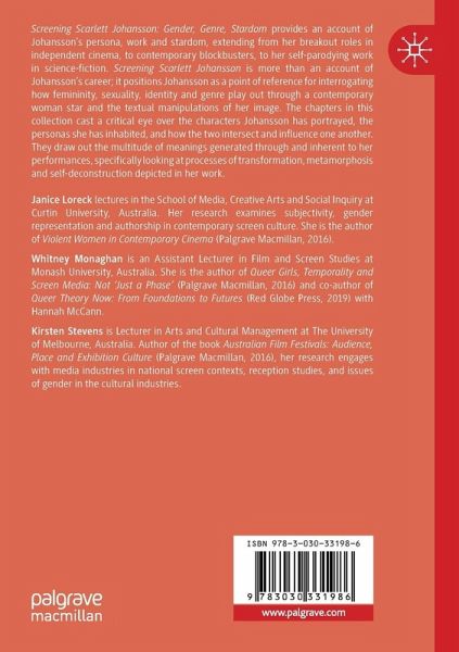 Screening Scarlett Johansson: Gender, Genre, Stardom provides an account of Johansson's persona, work and stardom, extending from her breakout roles in independent cinema, to contemporary blockbusters, to her self-parodying work in science-fiction. Screening Scarlett Johansson is more than an account of Johansson's career; it positions Johansson as a point of reference for interrogating how femininity, sexuality, identity and genre play out through a contemporary woman star and the textual manipulations of her image. The chapters in this collection cast a critical eye over the characters Johansson has portrayed, the personas she has inhabited, and how the two intersect and influence one another. They draw out the multitude of meanings generated through and inherent to her performances, specifically looking at processes of transformation, metamorphosis and self-deconstruction depicted in her work.