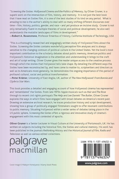 This book provides a detailed and engaging account of how Hollywood cinema has represented and 'remembered' the Sixties. From late 1970s hippie musicals such as Hair and The Rose through to recent civil rights portrayals The Help and Lee Daniels' The Butler , Oliver Gruner explores the ways in which films have engaged with broad debates on America's recent past. Drawing on extensive archival research, he traces production history and script development, showing how a group of politically engaged filmmakers sought to offer resonant contributions to public memory. Situating Hollywood within a wider series of debates taking place in the US public sphere, Screening the Sixties offers a rigorous and innovative study of cinema's engagement with this most contested of epochs.