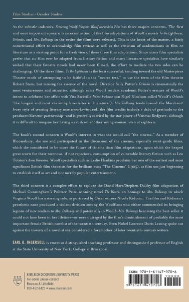 Screening Woolf examines the three film adaptations of her novels To the Lighthouse, Orlando, Mrs. Dalloway; her theorizing about film and its impact on her thinking about fiction; and her central role in the David Hare/Stephen Daldry adaptation of Michael Cunningham’s Pulitzer Prize–winning novel The Hours.