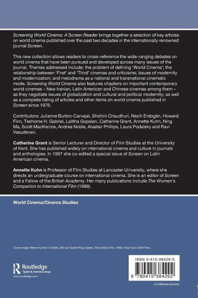 Available in one volume for the first time, this collection allows readers to cross-reference debates and essays that have ranged across many issues of Screen. Themes addressed include: the problem of defining 'world cinema'the relationship between 'first' and 'third' cinema and criticismissues of modernity and modernizationquestions of national and transnational cinema. With a selection of articles on key contemporary 'world' cinemas - New Iranian, Latin American and Chinese as well, this will be a must-read for all students of world cinema.