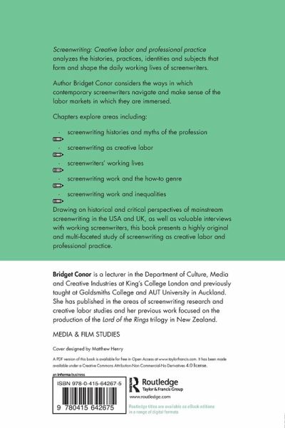Screenwriting: Creative Labor and Professional Practice analyzes the histories, practices, identities and subjects which form and shape the daily working lives of screenwriters. Author Bridget Conor considers the ways in which contemporary screenwriters navigate and make sense of the labor markets in which they are immersed.