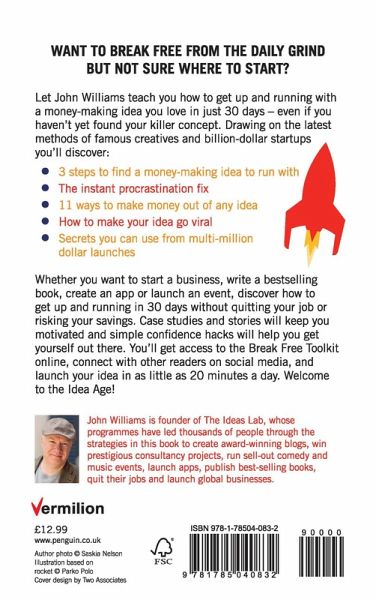 Let John Williams teach you how to get up and running with a money-making idea you love in just 30 days - even if you haven't yet found your killer concept. Drawing on the latest methods of famous creatives and billion-dollar startups you'll discover * 3 steps to find a money-making idea to run with * The instant procrastination fix * 11 ways to make money out of any idea * How to make your idea go viral * Secrets you can use from multi-million dollar launches Case studies and stories will keep you motivated and simple confidence hacks will help you get yourself out there. You'll get access to the Break Free Toolkit online connect with other readers on social media and launch your idea in as little as 20 minutes a day. Welcome to the idea age!