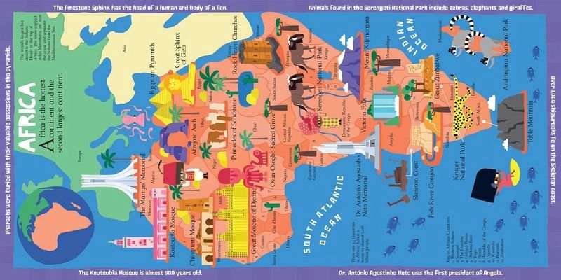 This fascinating and visually appealing atlas book will open children's imaginations to the richness of human culture. Each spread depicts a different continent and highlights the places where natural and man-made landmarks are found today. Fascinating facts about the atlas' subject feature around the edges of each spread, and there are helpful keys to assist young readers in identifying different countries.