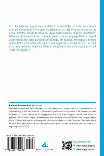En las páginas de este libro de Roberto Palomo- Silva, el lector se enfrenta a un pensamiento brillante que incursiona en las más diversas ramas de las artes liberales. Desde reseñas de libros hasta análisis políticos, fundamentalmente latinoamericanos. Todo ello, provisto de un lenguaje fluido al que el autor otorga su toque personal, ofreciendo, sin tapujos, su propia y sincera visión de los acontecimientos que tienen lugar en el mundo de hoy. Se trata este de un volumen imprescindible, si se quiere entender la sociedad actual y sus intríngulis.