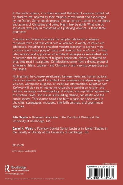 Highlighting the complex relationship between texts and human actions, this is an essential read for students and academics studying religion and violence, Abrahamic religions, or scriptural interpretation. Scripture and Violence will also be of interest to researchers working on religion and politics, sociology and anthropology of religion, socio-political approaches to scriptural texts, and issues surrounding religion, secularity, and the public sphere. This volume could also form a basis for discussions in churches, synagogues, mosques, interfaith settings, and government agencies.