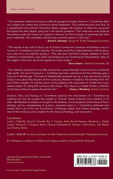 This book advances the interpretation of 1 Corinthians by exploring the ways the apostle Paul quoted or "echoed" Jewish scriptures more indirectly in his letter. Identification of allusions are brought to the fore, as are questions of the texture of Paul's theology and his understanding of scripture. Important topics in 1 Corinthians addressed here include Paul's use of the Law, monotheism, Christology, wisdom and mystery language, punishment of the incestuous man, baptism for the dead, eschatology, and resurrection.