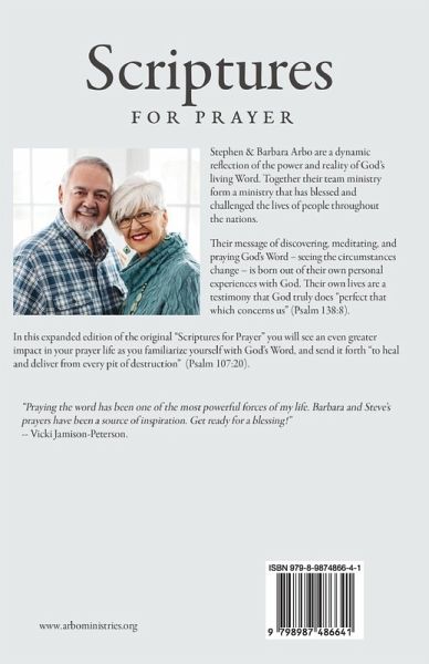 Praying scriptures from the Bible is a powerful force for change. In this book, you will discover, meditate and pray God's Word to see a difference in your circumstances. This book is a handbook that categorizes scriptures under subjects for prayer. First John 4:14 says that when we ask God anything according to His will (His Word), He hears and answers us! In this expanded edition of their original "Scriptures for Prayer," you will see an even more significant impact on your prayer life. As you familiarize yourself with God's Word and send it forth, God will "perfect that which concerns you."