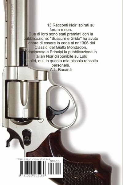 13 Racconti Noir ispirati su forum e non. Due di loro sono stati premiati con la pubblicazione: "Sussurri e Grida" ha avuto l'onore di essere in coda al nr.1306 dei Classici del Giallo Mondadori, Principesse e Principi la pubblicazione in Italian Noir disponibile su Lulù Gli altri, qui, in questa mia piccola raccolta personale.