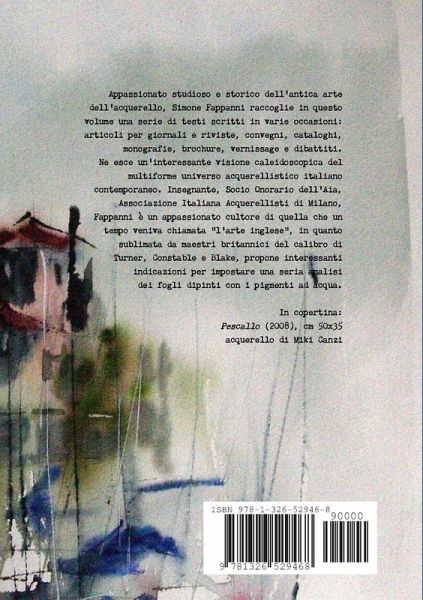Appassionato studioso e storico dell'antica arte dell'acquerello, Simone Fappanni raccoglie in questo volume una serie di testi scritti per le più varie e diverse occasioni: articoli per giornali e riviste, convegni, cataloghi, monografie, brochure, vernissage e dibattiti. Ne esce un'interessante visione caleidoscopica del multiforme universo acquerellistico italiano contemporaneo. Insegnante, Socio Onorario dell'Aia, Associazione Italiana Acquerellisti di Milano, Fappanni è un appassionato cultore di quella che un tempo veniva chiamata "l'arte inglese", in quanto sublimata da maestri britannici del calibro di Turner, Constable e Blake, e in questo volume offre interessanti indicazioni per impostare una seria e attenta analisi dei fogli dipinti con i pigmenti ad acqua.