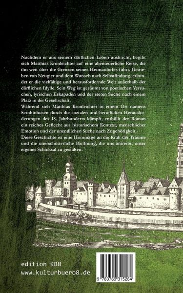 Nachdem er aus seinem dörflichen Leben ausbricht, begibt sich Matthias Kronleichter auf eine abenteuerliche Reise, die ihn weit über die Grenzen seines Heimatdorfes führt. Getrieben von Neugier und dem Wunsch nach Selbstfindung, erkundet er die vielfältige und herausfordernde Welt außerhalb der dörflichen Idylle. Sein Weg ist gesäumt von poetischen Versuchen, lyrischen Eskapaden und der steten Suche nach einem Platz in der Gesellschaft. Während sich Matthias Kronleichter in einem Ort namens Scrobinhusen durch die sozialen und beruflichen Herausforderungen des 18. Jahrhunderts kämpft, enthüllt der Roman ein reiches Geflecht aus historischem Kontext, menschlicher Emotion und der unendlichen Suche nach Zugehörigkeit. Diese Geschichte ist eine Hommage an die Kraft der Träume und die unerschütterliche Hoffnung, die uns antreibt, unser eigenes Schicksal zu gestalten.