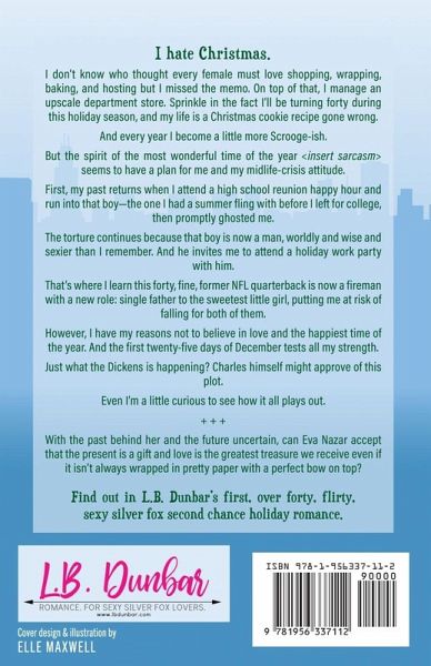 I hate Christmas. I don't know who thought every female must love shopping, wrapping, baking and hosting but I missed the memo. On top of that, I manage an upscale department store. Sprinkle in the fact I'll be turning forty during this holiday season, and my life is a Christmas cookie recipe gone wrong. And every year I become a little more Scrooge-ish. But the spirit of the most wonderful time of the year seems to have a plan for me and my midlife-crisis attitude. First, my past returns when I attend a high school reunion happy hour and run into that boy-the one I had a summer fling before I left for college, then promptly ghosted me. The torture continues because that boy is now a man, worldly and wise and sexier than I remember. And he invites me to attend a holiday work party with him. That's where I learn this forty, fine, former NFL quarterback, now fireman has a new role: single father to the sweetest little girl, putting me at risk of falling for both of them. However, I have my reasons not to believe in love and the happiest time of the year. And the first twenty-five days of December tests all my strength. Just what the Dickens is happening? Charles himself might approve of this plot. Even I'm a little curious to see how it all plays out. + + + With the past behind her and the future uncertain, can Eva Nazar accept that the present is a gift and love is the greatest treasure we receive even if it isn't always wrapped in pretty paper with a perfect bow on top?