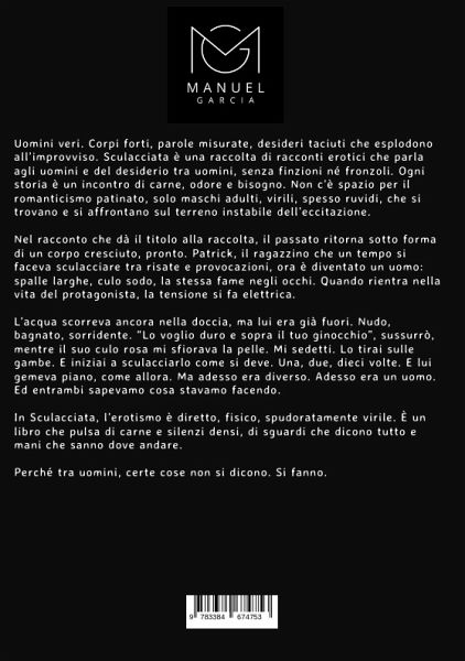Uomini veri. Corpi forti, parole misurate, desideri taciuti che esplodono all'improvviso. Sculacciata è una raccolta di racconti erotici che parla agli uomini e del desiderio tra uomini, senza finzioni né fronzoli. Ogni storia è un incontro di carne, odore e bisogno. Non c'è spazio per il romanticismo patinato, solo maschi adulti, virili, spesso ruvidi, che si trovano e si affrontano sul terreno instabile dell'eccitazione.Nel racconto che dà il titolo alla raccolta, il passato ritorna sotto forma di un corpo cresciuto, pronto. Patrick, il ragazzino che un tempo si faceva sculacciare tra risate e provocazioni, ora è diventato un uomo: spalle larghe, culo sodo, la stessa fame negli occhi. Quando rientra nella vita del protagonista, la tensione si fa elettrica.L'acqua scorreva ancora nella doccia, ma lui era già fuori. Nudo, bagnato, sorridente. "Lo voglio duro e sopra il tuo ginocchio", sussurrò, mentre il suo culo rosa mi sfiorava la pelle. Mi sedetti. Lo tirai sulle gambe. E iniziai a sculacciarlo come si deve. Una, due, dieci volte. E lui gemeva piano, come allora. Ma adesso era diverso. Adesso era un uomo. Ed entrambi sapevamo cosa stavamo facendo.In Sculacciata, l'erotismo è diretto, fisico, spudoratamente virile. È un libro che pulsa di carne e silenzi densi, di sguardi che dicono tutto e mani che sanno dove andare.Perché tra uomini, certe cose non si dicono. Si fanno.