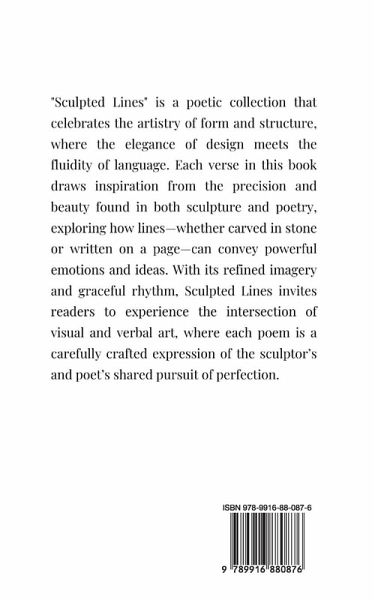 In "Sculpted Lines," the poet masterfully carves emotions and thoughts into verse, transforming the intangible into the tangible. Each poem is a delicate sculpture, intricately crafted with words that resonate deeply and evoke vivid imagery. The collection explores themes of love, loss, identity, and the passage of time, inviting readers to reflect on their own experiences. Through rich metaphors and rhythmic cadences, the poet guides us on a journey across landscapes of the heart and mind, revealing the beauty found in vulnerability and the strength in resilience. "Sculpted Lines" is not just a book of poems; it is a testament to the power of language to shape our understanding of ourselves and the world around us. Join the poet in this immersive exploration, and discover the lines that bind us all together in our shared human experience.