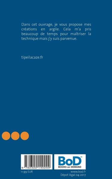 Dans cet ouvrage, je vous propose mes créations en argile. Cela m'a pris beaucoup de temps pour maîtriser la technique mais j'y suis parvenue.
