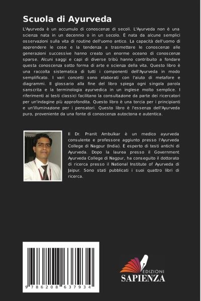 L'Ayurveda è un accumulo di conoscenze di secoli. L'Ayurveda non è una scienza nata in un decennio o in un secolo. È nata da alcune semplici osservazioni sulla vita di routine dell'uomo antico. La capacità dell'uomo di apprendere le cose e la tendenza a trasmettere le conoscenze alle generazioni successive hanno creato un enorme oceano di conoscenze sparse. Alcuni saggi e capi di diverse tribù hanno contribuito a fondare questa conoscenza sotto forma di arte e scienza della vita. Questo libro è una raccolta sistematica di tutti i componenti dell'Ayurveda in modo semplificato. I vari concetti sono elaborati con l'aiuto di metafore e diagrammi. Il glossario alla fine del libro spiega ogni singola parola sanscrita e la terminologia ayurvedica in un inglese molto semplice. I riferimenti ai testi classici facilitano la consultazione da parte dei ricercatori per un'indagine più approfondita. Questo libro è una torcia per i principianti e un'illuminazione per i pensatori. Questo libro è l'essenza dell'Ayurveda puro, proveniente da una fonte di conoscenza autoctona e autentica.
