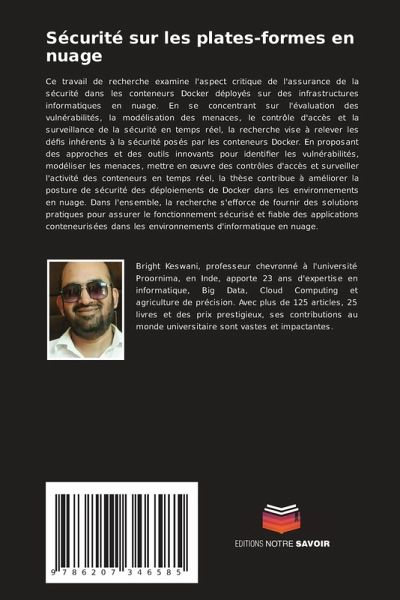 Ce travail de recherche examine l'aspect critique de l'assurance de la sécurité dans les conteneurs Docker déployés sur des infrastructures informatiques en nuage. En se concentrant sur l'évaluation des vulnérabilités, la modélisation des menaces, le contrôle d'accès et la surveillance de la sécurité en temps réel, la recherche vise à relever les défis inhérents à la sécurité posés par les conteneurs Docker. En proposant des approches et des outils innovants pour identifier les vulnérabilités, modéliser les menaces, mettre en oeuvre des contrôles d'accès et surveiller l'activité des conteneurs en temps réel, la thèse contribue à améliorer la posture de sécurité des déploiements de Docker dans les environnements en nuage. Dans l'ensemble, la recherche s'efforce de fournir des solutions pratiques pour assurer le fonctionnement sécurisé et fiable des applications conteneurisées dans les environnements d'informatique en nuage.