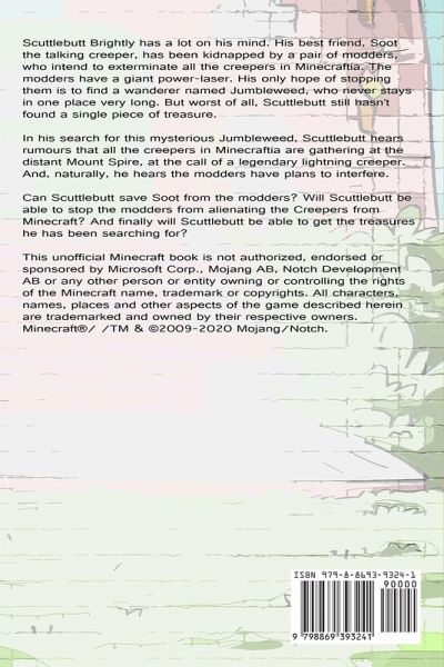 Scuttlebutt Brightly has a lot on his mind. His best friend, Soot the talking creeper, has been kidnapped by a pair of modders, who intend to exterminate all the creepers in Minecraftia. The modders have a giant power-laser. His only hope of stopping them is to find a wanderer named Jumbleweed, who never stays in one place very long. But worst of all, Scuttlebutt still hasn't found a single piece of treasure. In his search for this mysterious Jumbleweed, Scuttlebutt hears rumours that all the creepers in Minecraftia are gathering at the distant Mount Spire, at the call of a legendary lightning creeper. And, naturally, he hears the modders have plans to interfere. Can Scuttlebutt saved Soot from the modders? Will Scuttlebutt be able to stop the modders from alienating the Creepers from Minecraft? And finally will Scuttlebutt be able to get the treasures he has been searching for? An Unofficial Minecraft Diary Book for Kids Ages 9 - 12 (Preteen / Thrilling Minecraft Adventure / Minecraft Novel THIS MINECRAFT ADVENTURE STORY IS A MUST READ FOR MINECRAFT FANS ESPECIALLY FOR KIDS AGE 5-7 , 6-8 , 8-10 , 9-12 , THIS EXCITING MINECRAFT BOOK IS MADE for ages 6, 7, 8, 9, 10, 11, 12 and older. MOTIVATE YOUR 8 YEAR OLD BOYS AND GIRLS OR MINECRAFT KIDS AGES 9-12 TO READ WITH THIS EXCITING STORY. GET YOUR COPY NOW!!! This unofficial Minecraft book is not authorized, endorsed or sponsored by Microsoft Corp., Mojang AB, Notch Development AB or any other person or entity owning or controlling the rights of the Minecraft name, trademark or copyrights. All characters, names, places and other aspects of the game described herein are trademarked and owned by their respective owners. Minecraft®/ /TM & (c)2009-2016 Mojang/Notch.