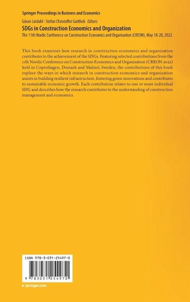 This book examines how research in construction economics and organization contributes to the achievement of the SDGs. Featuring selected contributions from the 11th Nordic Conference on Construction Economics and Organisation (CREON 2022) held in Copenhagen, Demark and Malmö, Sweden, the contributions of this book explore the ways in which research in construction economics and organization assists in building resilient infrastructure, fostering green innovations and contributes to sustainable economic growth. Each contribution relates to one or more individual SDG and describes how the research contributes to the understanding of construction management and economics.