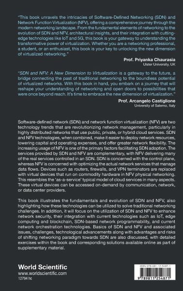 Software-defined network (SDN) and network function virtualization (NFV) are two technology trends that have revolutionized network management, particularly in highly distributed networks that are used in public, private, or hybrid cloud services. SDN and NFV technologies, when combined, simplify the deployment of network resources, lower capital and operating expenses, and offer greater network flexibility. The increasing usage of NFV is one of the primary factors that make SDN adoption attractive. The integration of these two technologies; SDN and NFV, offer a complementary service, with NFV delivering many of the real services controlled in an SDN. While SDN is focused on the control plane, NFV optimizes the actual network services that manage the data flows. Devices such as routers, firewalls, and VPN terminators are replaced with virtual devices that run on commodity hardware in NFV physical networking. This resembles the 'as-a-service' typical model of cloud services in many aspects. These virtual devices can be accessed on-demand by communication, network, or data center providers. This book illustrates the fundamentals and evolution of SDN and NFV and highlights how these two technologies can be integrated to solve traditional networking problems. In addition, it will focus on the utilization of SDN and NFV to enhance network security, which will open ways to integrate them with current technologies such as IoT, edge computing and blockchain, SDN-based network programmability, and current network orchestration technologies. The basics of SDN and NFV and associated issues, challenges, technological advancements along with advantages and risks of shifting networking paradigm towards SDN are also discussed. Detailed exercises within the book and corresponding solutions are available online as accompanying supplementary material.