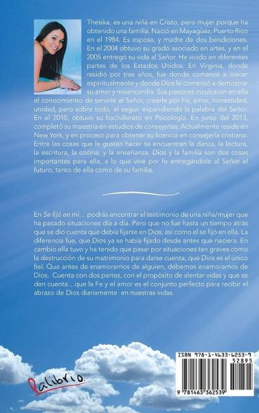 En Se fijó en mí... podrás encontrar el testimonio de una niña/mujer que ha pasado situaciones día a día. Pero que no fue hasta un tiempo atrás que se dio cuenta que debía fijarse en Dios, así como el se fijó en ella. La diferencia fue, que Dios ya se había fijado desde antes que naciera. En cambio ella tuvo y ha tenido que pasar por situaciones tan graves como la destrucción de su matrimonio para darse cuenta, que Dios es el único fiel. Que antes de enamorarnos de alguien, debemos enamorarnos de Dios. Cuenta con dos partes, con el propósito de alentar vidas y que se den cuenta...que la Fe y el amor es el conjunto perfecto para recibir el abrazo de Dios diariamente en nuestras vidas.