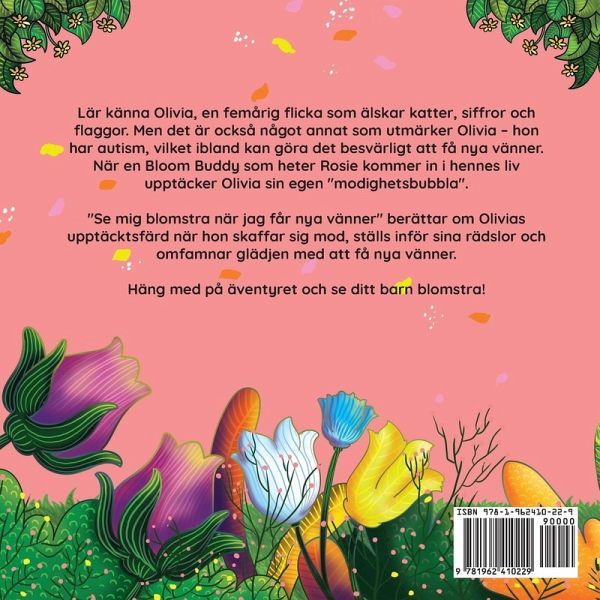 När Olivia, en 5-årig flicka med autism, känner sig så överväldigad av sin blyghet och rädsla att hon blir alldeles utom sig träffar hon Rosie, sin Bloom Buddy, som presenterar henne för "Modighetsbubblan" och andra strategier för att hantera känslor. Se mig blomstra när jag får nya vänner, skriven av den prisbelönta författaren och certifierade beteendeanalytikern Grace Ledden, lär barn effektiva strategier för att hantera sociala situationer och bygga upp självförtroendet för att övervinna blyghet och rädsla. Boken ger dem verktyg för att knyta meningsfulla vänskapsband och bemästra komplexa sociala situationer och är därmed en ovärderlig hjälp för unga människor som vill lära sig att knyta an till andra. "Bra jobbat, Olivia," sa Rosie. "Kom ihåg att det är okej att känna sig rädd och blyg. Om du någonsin behöver mig igen så bara tänk på mig, och vips är jag här och hjälper dig." Med sina vackra illustrationer och sin engagerande berättelse passar boken alla barn som kan känna sig blyga och ängsliga inför att skaffa nya vänner. Se hela Bloom Buddies-serien för fler äventyr om hur man hanterar känslor! I Se mig blomstra när jag får nya vänner hittar du:En berättelse att känna igen sig i: Genom att följa Olivias berättelse om utmaningar och segrar kan varje barn sätta sig in i handlingen och förstå att det är okej att känna sig rädd och blyg, och att också de kan blomstra. Praktiska strategier för att hantera situationer: Genom engagerande berättelser får ditt barn lära sig konkreta tekniker för att hantera sina känslor - verktyg som de kan använda i verkliga situationer. Att se positivt på neurodiversitet: Boken är skriven av Grace Ledden, certifierad beteendeanalytiker, och är inte bara underhållande utan även lärorik och bidrar till en värld som bejakar neurodiversitet och varje barns unika egenskaper. Vackra illustrationer: Vackra scener med inslag av lekfullhet och massor av kärlek på varje sida. Perfekt som godnattsaga eller för läsning i klassrummet. GRATIS digitala nedladdningar: Skanna den medföljande QR-koden med mobilen och ladda ner ytterligare exklusivt innehåll med Olivia & Rosie. Köp ditt exemplar idag och se ditt barn blomstra.