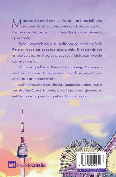 Mackenzie Jones é uma garota com um futuro brilhante, mas que desde pequena sofre com baixa autoestima. Por isso, acredita que um rapaz jamais olhará para ela de modo apaixonado. Então, inesperadamente, seu melhor amigo, o coreano Baek Fletcher, reaparece após três anos sumido. E, apesar de seu esforço para manter o segredo, todos os sinais indicam que ele continua a amá-la. Mas há um problema: Baek carregas consigo traumas e o medo de não ser aceito, em razão de erros de um passado que Mackenzie ainda desconhece. Assim, entre sonhos de infância e propósitos eternos, tudo o que eles têm são os últimos dias de verão para que sejam reconstruídos, de dentro para fora, pelas mãos do Criador.