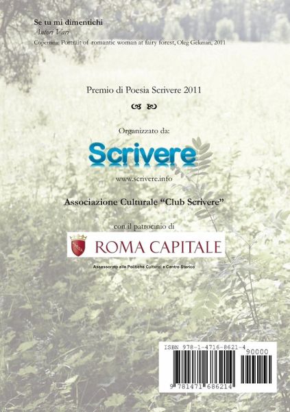 In questo volume sono pubblicate tutte le opere che hanno partecipato al Premio di Poesia Scrivere 2011, organizzato dalla Associazione Culturale "Club Scrivere" e dal sito di poesie "Scrivere" (www.scrivere.info) con il patrocinio dell'Assessorato alle Politiche Culturali e Centro Storico del Comune di Roma. "Se tu mi dimentichi": Primo premio: Non ti scordar di me di Franca Maria Canfora, Secondo premio: Restami pensiero di Rita Minniti, Terzo premio: Gelsomino di Luigi D'agnone, "Poesia a tema libero": Primo premio: Inganno ancestrale di Mario Calzolaro, Secondo premio: Il dono di Nadia De Stefano, Terzo premio: Ode agli Eroi d'Oslavia di Carlo Infante, "Avete il pennello, avete i colori, dipingete voi il paradiso e entrateci": Primo premio: I colori dell'anima di Saverio Chiti, Secondo premio: Al nord dell'eden di Antonio D'Auria, Terzo premio: L'angolo blu di Irene Tripodo, "Vittime da Zolfo e Piombo": Primo premio: Bambino della guerra di Rita Cottone.