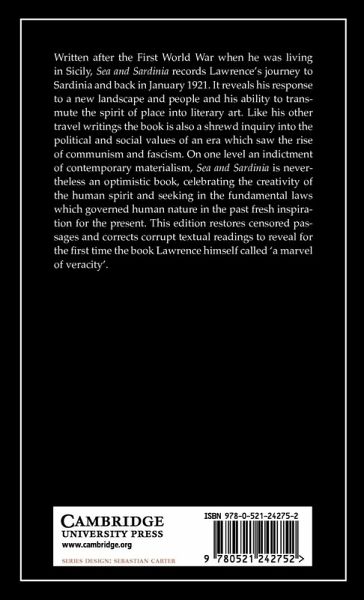 Written after the First World War when he was living in Sicily, Sea and Sardinia records Lawrence's journey to Sardinia and back in January 1921. It reveals his response to a new landscape and people and his ability to transmute the spirit of place into literary art. Like his other travel writings the book is also a shrewd inquiry into the political and social values of an era which saw the rise of communism and fascism. On one level an indictment of contemporary materialism, Sea and Sardinia is nevertheless an optimistic book, celebrating the creativity of the human spirit and seeking in the fundamental laws which governed human nature in the past fresh inspiration for the present. This 1997 edition restores censored passages and corrects corrupt textual readings to reveal for the first time the book Lawrence himself called 'a marvel of veracity'.