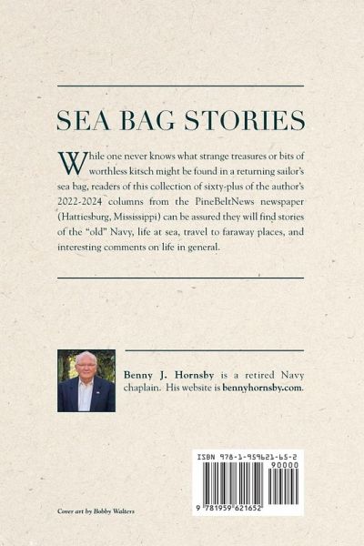 While one never knows what strange treasures or bits of worthless kitsch might be found in a returning sailor's sea bag, readers of this collection of the author's newspaper columns can be assured they will find stories of the "old" Navy, life at sea, travel to faraway places, and interesting comments on life in general.