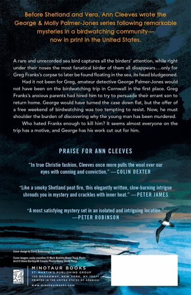 "A rare and unrecorded sea bird captures all the birders' attention, while right under their noses, the most fanatical birder of them all disappears. Greg Franks' corpse later is found floating in the sea, his head bludgeoned. Had it not been for Greg, amateur detective George Palmer-Jones would not have been on the birdwatching trip in Cornwall in the first place. Greg Franks' anxious parents had hired George to try to persuade their errant son to return home. George would have turned the case down flat, but the offer of a free weekend birdwatching was too tempting to resist. Now he must shoulder the burden of discovering why the young man has been murdered. Who hated Franks enough to kill him? It seems almost everyone on the trip has a motive, and George has his work cut out for him."--