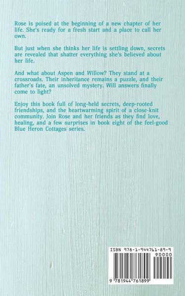 Rose is poised at the beginning of a new chapter of her life. She's ready for a fresh start and a place to call her own. But just when she thinks her life is settling down, secrets are revealed that shatter everything she's believed about her life. And what about Aspen and Willow? They stand at a crossroads. Their inheritance remains a puzzle, and their father's fate, an unsolved mystery. Will answers finally come to light? Enjoy this book full of long-held secrets, deep-rooted friendships, and the heartwarming spirit of a close-knit community. Join Rose and her friends as they find love, healing, and a few surprises in the conclusion of the feel-good Blue Heron Cottages series.