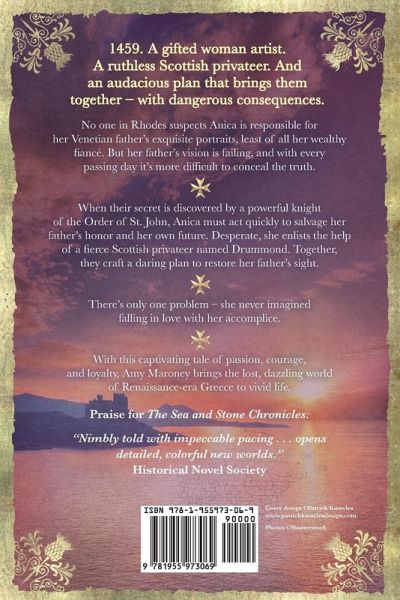 1459. A gifted woman artist. A ruthless Scottish privateer. And an audacious plan that throws them together-with dangerous consequences. No one on the Greek island of Rhodes suspects Anica is responsible for her Venetian father's exquisite portraits, least of all her wealthy fiancé. But her father's vision is failing, and with every passing day it's more difficult to conceal the truth. When their secret is discovered by a powerful knight of the Order of St. John, Anica must act quickly to salvage her father's honor and her own future. Desperate, she enlists the help of a fierce Scottish privateer named Drummond. Together, they craft a daring plan to restore her father's sight. There's only one problem-she never imagined falling in love with her accomplice. Before their plan can unfold, a shocking scandal involving the knights puts Anica's entire family at risk. Her only hope is to turn to Drummond once again, defying her parents, her betrothed, even the Grand Master of the Knights himself. But can she survive the consequences? With this captivating tale of passion, courage, and loyalty, Amy Maroney brings a lost, dazzling world to vivid life. Sea of Shadows is Book 2 in a series of stand-alone historical novels packed with adventure and romance.