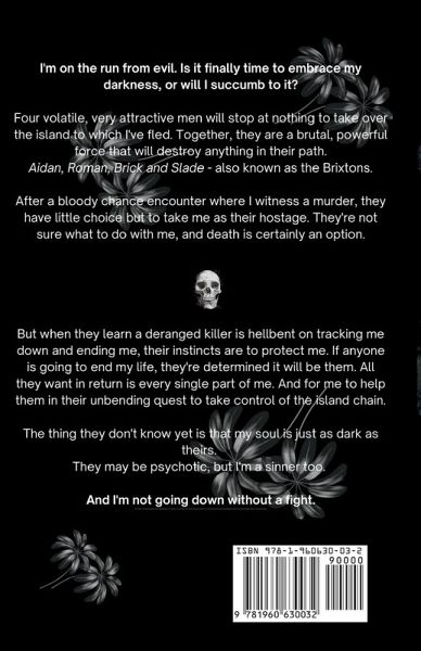 I'm on the run from evil. Is it finally time to embrace my darkness, or will I succumb to it? Four volatile, very attractive men will stop at nothing to take over the island to which I've fled. Together, they are a brutal, powerful force that will destroy anything in their path. Aidan, Roman, Brick and Slade - also known as the Brixtons. After a bloody chance encounter where I witness a murder, they have little choice but to take me as their hostage. They're not sure what to do with me, and death is certainly an option. But when they learn a deranged killer is hellbent on tracking me down and ending me, their instincts are to protect me. If anyone is going to end my life, they're determined it will be them. All they want in return is every single part of me. And for me to help them in their unbending quest to take control of the island chain. The thing they don't know yet is that my soul is just as dark as theirs. They may be psychotic, but I'm a sinner too. And I'm not going down without a fight. **Sea of Sinners is a Dark Reverse Harem (Why Choose) Romance. 18+. Warning: this book includes graphic violence and sex scenes, and references of abuse/assault that some readers may experience as triggering. Sea of Sinners is book 2 in the Blood and Sand collection. It is a duet with Book 3 which also follows the Brixton storyline.