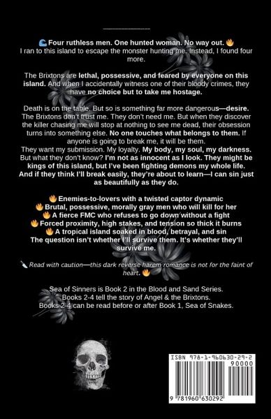 ¿¿¿¿ Four ruthless men. One hunted woman. No way out. I ran to this island to escape the monster hunting me. Instead, I found four more. Aidan, Roman, Brick, and Slade-better known as the Brixtons. They are lethal, possessive, and feared by everyone on this island. And when I accidentally witness one of their bloody crimes, they have no choice but to take me hostage. Death is on the table. But so is something far more dangerous-desire. The Brixtons don't trust me. They don't need me. But when they discover the killer chasing me will stop at nothing to see me dead, their obsession turns into something else. No one touches what belongs to them. If anyone is going to break me, it will be them. And if they think I'll break easily, they're about to learn-I can sin just as beautifully as they do. Enemies-to-lovers with a twisted captor dynamic Brutal, possessive, morally gray men who will kill for her A fierce FMC who refuses to go down without a fight Forced proximity, high stakes, and tension so thick it burns A tropical island soaked in blood, betrayal, and sin The question isn't whether I'll survive them. It's whether they'll survive me. Note: This is the REGULAR cover edition.