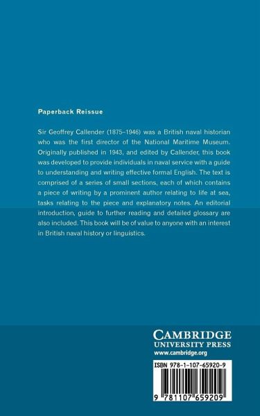 Sir Geoffrey Callender (1875-1946) was a British naval historian who was the first director of the National Maritime Museum. Originally published in 1943, and edited by Callender, this book was developed to provide individuals in naval service with a guide to understanding and writing effective formal English. The text is comprised of a series of small sections, each of which contains a piece of writing by a prominent author relating to life at sea, tasks relating to the piece and explanatory notes. An editorial introduction, guide to further reading and detailed glossary are also included. This book will be of value to anyone with an interest in British naval history or linguistics.